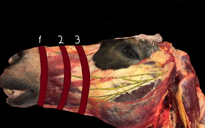 El estudio utilizó una cabeza de un cadáver equino, sobre la que ejercieron presión en tres puntos diferentes de la cabeza, donde normalmente se ajusta la muserola y la brida, con el objetivo de analizar sus efectos en los nervios faciales y la fascia circundante. El nervio facial del caballo está dividido en ramas bucales dorsales y ventrales, las cuales corren a lo largo de un arco cigomático y se conectan a las capas fasciales del músculo masetero.